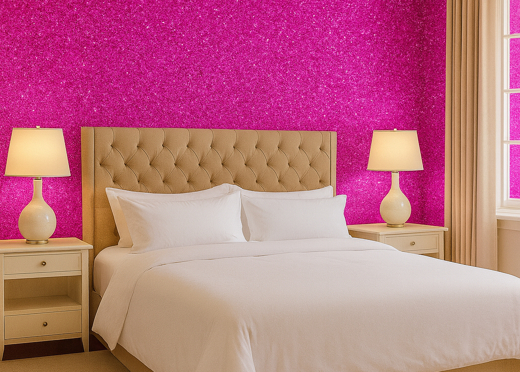 Make a bold and unforgettable statement with our Hot Pink Glitter Wallpaper — a vivid, high-impact wallcovering bursting with energy, confidence, and sparkle. Part of the exclusive Glitter Walls collection, this UK-made, fabric-backed wallpaper delivers instant glamour with a striking, light-reactive finish.